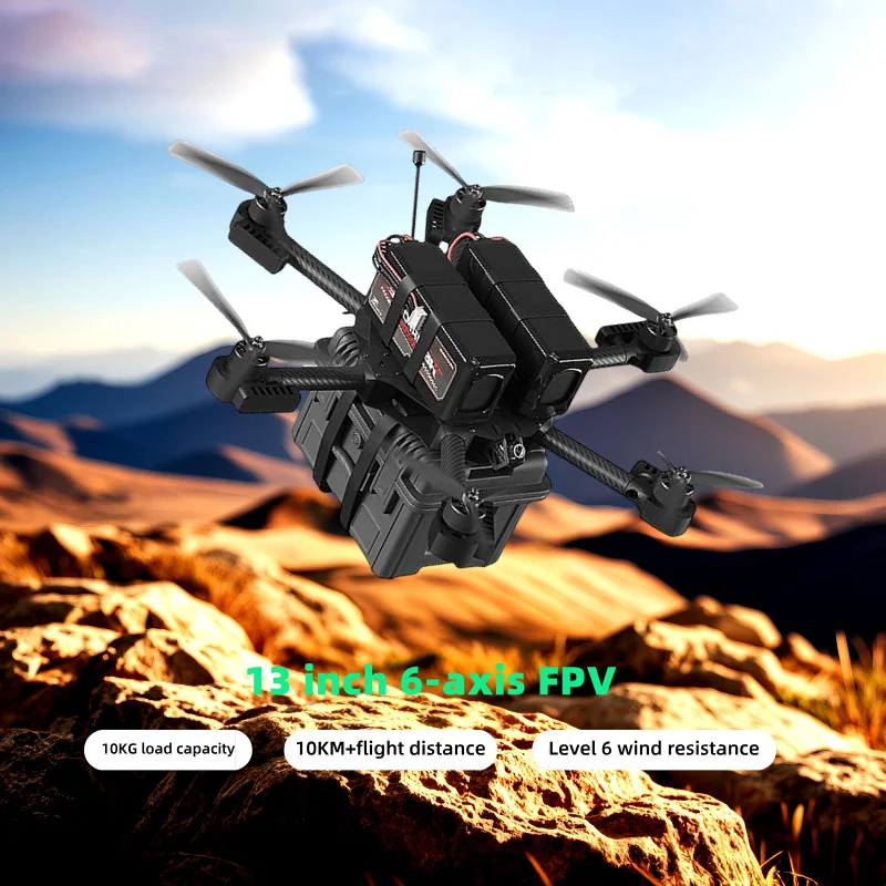 Rated load: 8.5kg额定负载:8.5kgMaximum load weight: 9.5kg最大负载重量:9.5kgMaximum take-off weight: 15kg最大起飞重量:15kgMaximum control distance: 10km 最大控制距离:10kmRated load hovering time (0 altitude, <2 winds): 12min额定负载悬停时间(0高度,<2级风):12minHovering time with full load (0 altitude, <2 winds): 9min满载悬停时间(0高度,<2风):9minMaximum tilt angle: 360°最大倾斜角度:360°Maximum horizontal flight speed (0 altitude, <2 winds): 140km/h最大水平飞行速度(0高度,<2风):140km/hMaximum take-off altitude: 5000m最大起飞高度:5000mMaximum ascent speed: 12m/s最大上升速度:12m/sMaximum descent speed: 20m/s最大下降速度:20m/sMaximum Wind Rating: Class 6最大风力等级:6级Default Maximum Angular Velocity: Pitch Axis: 670°/s; Roll Axis: 670°/s; Heading Axis: 670°/s默认最大角速度:俯仰轴:670°/s;横滚轴:670°/s;航向轴:670°/sReceiver operating band: ELRS915MHz (other bands can be customized)接收机工作频段:ELRS915MHz(其他频段可定制)Chart transmission power (default 3W): 25mW/1.6W/2W/2.5W/3W图表发射功率(默认3W):25mW/1.6W/2W/2.5W/3WTransmission band: 5.8Ghz (other bands can be customized)传输频段:5.8Ghz(其他频段可定制)Mapping antenna VSWR: <1.5测绘天线驻波比:<1.5Mapping antenna gain: 2dB映射天线增益:2dBDimension(L*W*H): 670*760*110mm尺寸(长*宽*高):670*760*110mmWheelbase: 700mm轴距:700mmFrame material: T300 carbon fiber车架材质:T300碳纤维Temperature: -10°C~40温度:-10℃~40℃