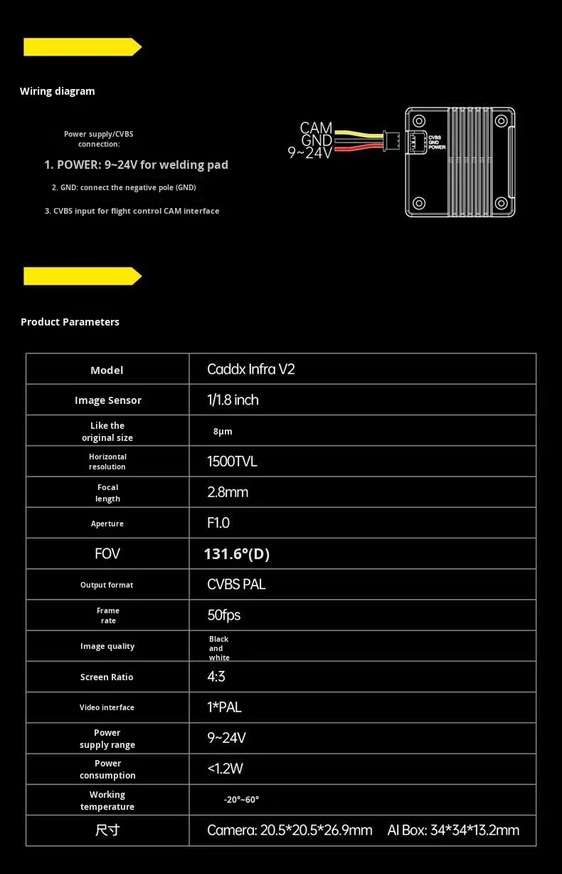 Supports OEM/ODM customization Caddx INFRA V2 ABS FPV Drone Simulation Night Vision Black and White Lightless Camera Made in Guangdong