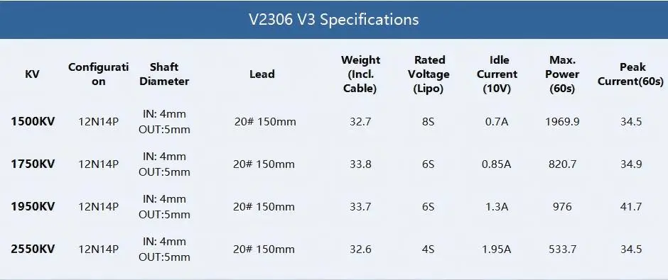 Rated Voltage(Lipo) 额定电压(锂电池)